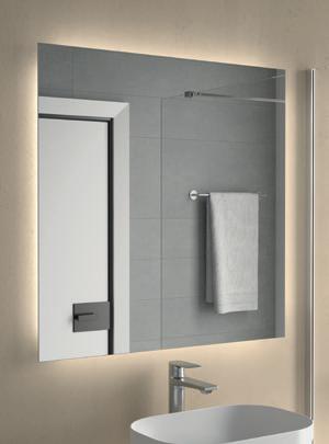 Miroir horizontal avec éclairage LED en façade et système antibuée