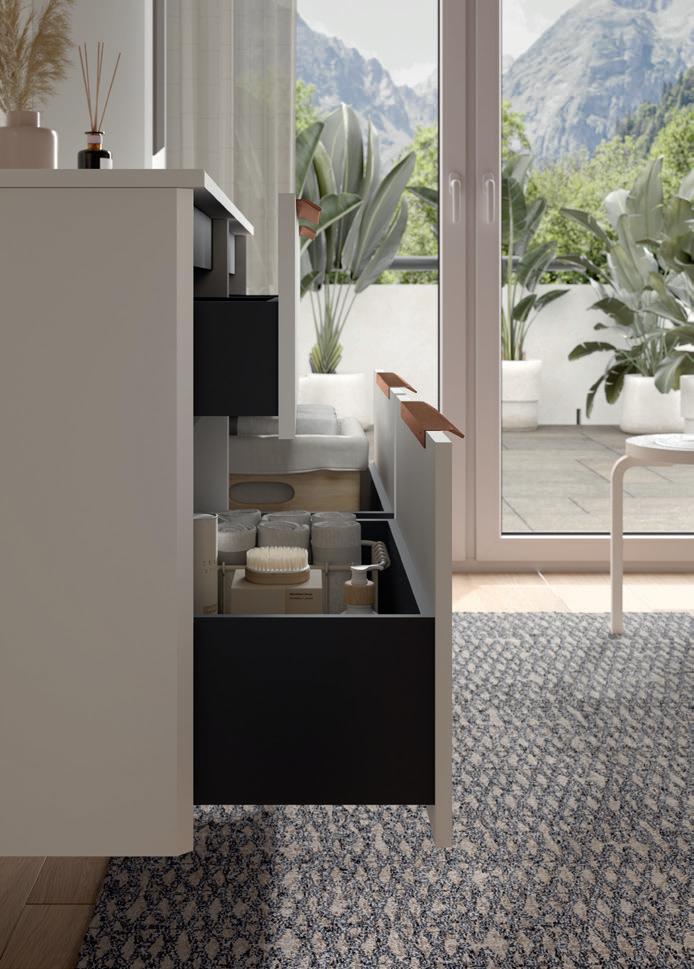 L’expertise se traduit par la qualité, et chez SALGAR, nous possédons plus de 75 ans d’expérience. C’est pourquoi nous savons qu’un fonctionnement fluide des tiroirs est essentiel. Pour la série S.BATH, nous avons choisi des glissières HETTICH 25 KG, une qualité fiable, quelle que soit la façon dont vous les utilisez.