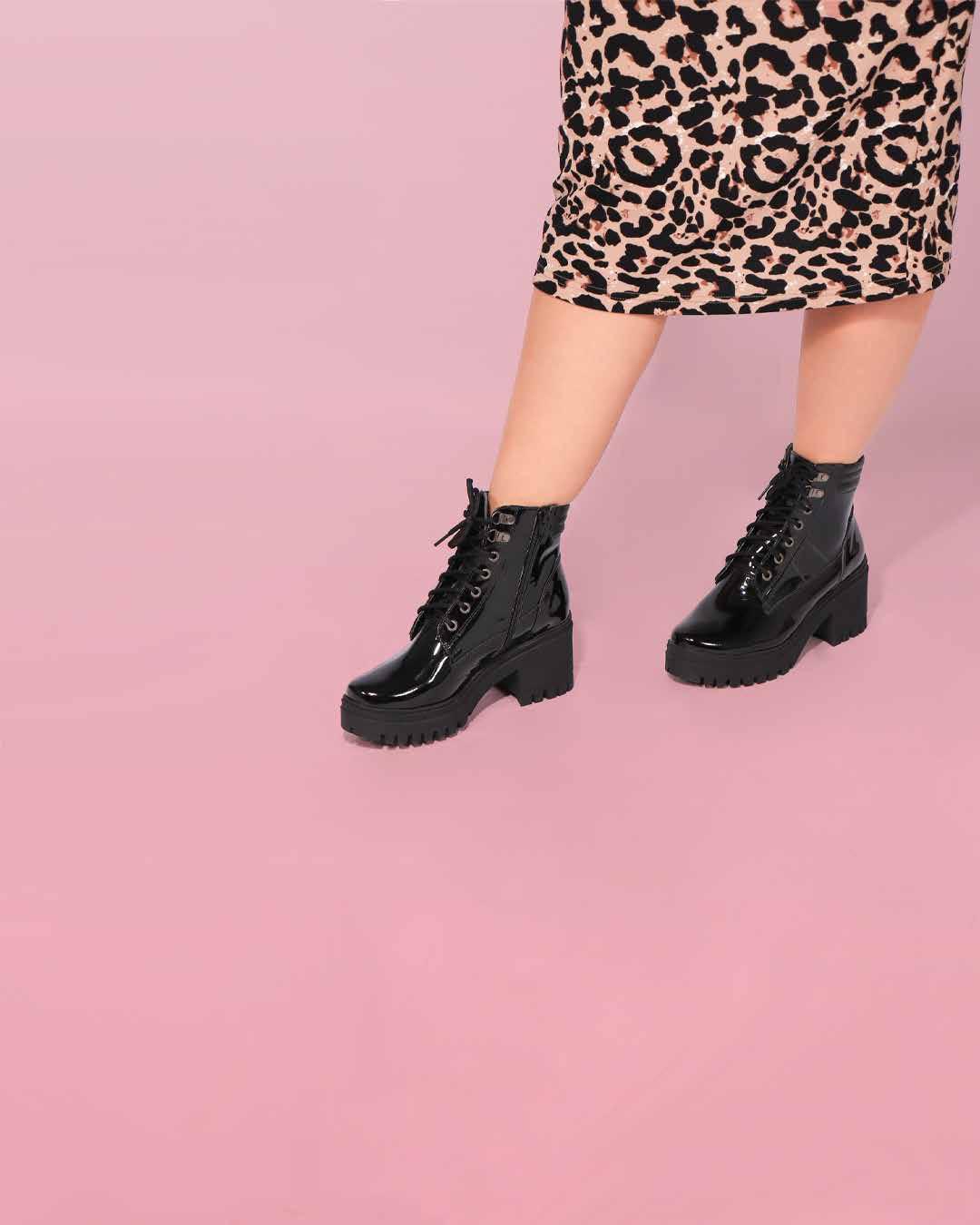 BOTIN ESLABORADO EN CHAROL DISPONIBLE EN TALLAS 34 A 40 TACÓN DE 6CM CON ZIPPER