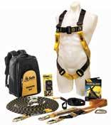 Complete with Tradesman full body harness, fall arrest system, tie off anchor strap and a steel edge anchor all packed in a back pack.