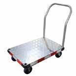 • A spring loaded foot operated lever tilts the wheel axle into the best position for lifting and moving the load