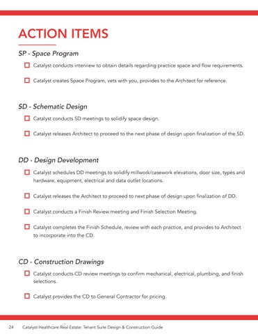Catalyst Healthcare Real Estate Development, Leasing, & Construction TeamThe overall development schedule must be adhered to in order to ensure the most cost-effective, timely, and efficient transition into your new practice space.