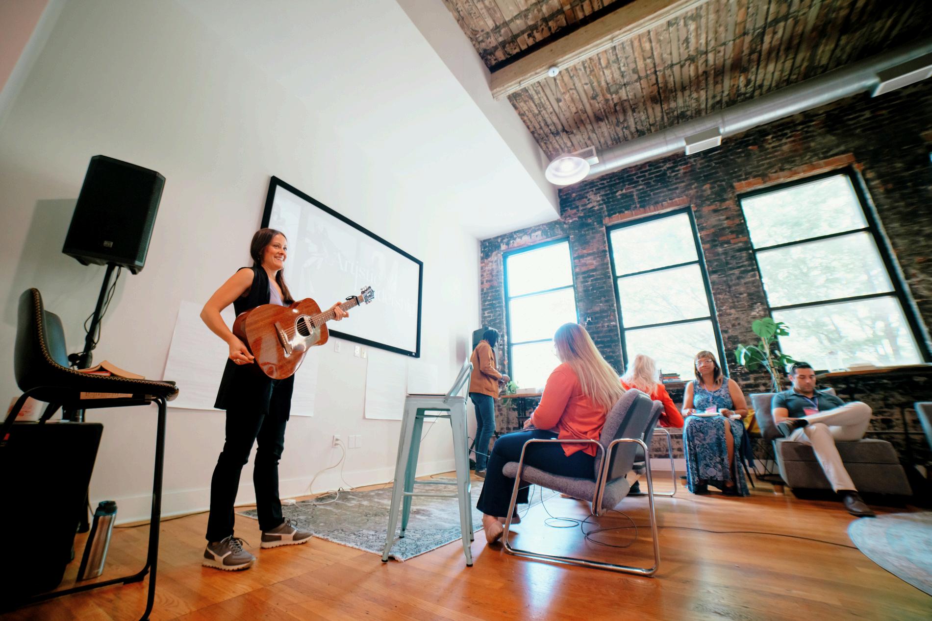 It is against this backdrop that I developed a communal songwriting pedagogy aimed at unlocking connection, curiosity, creativity, compassion, and courage. Drawing from my experience as a CIA analyst, songwriter, facilitator, and recording artist, I created a three-part process that guides participants through solo reflection, small group sharing, and large group collaboration to create a song together. A fusion of music, creative writing, poetry and singing, communal songwriting offers a powerful modality for contemporary character educators who aim to nurture the whole person. It creates space for educators and leaders to invite the creative spirit of each participant to show up and express. Ideas begin to move from the head into the heart, the place where transformational character formation ultimately occurs.