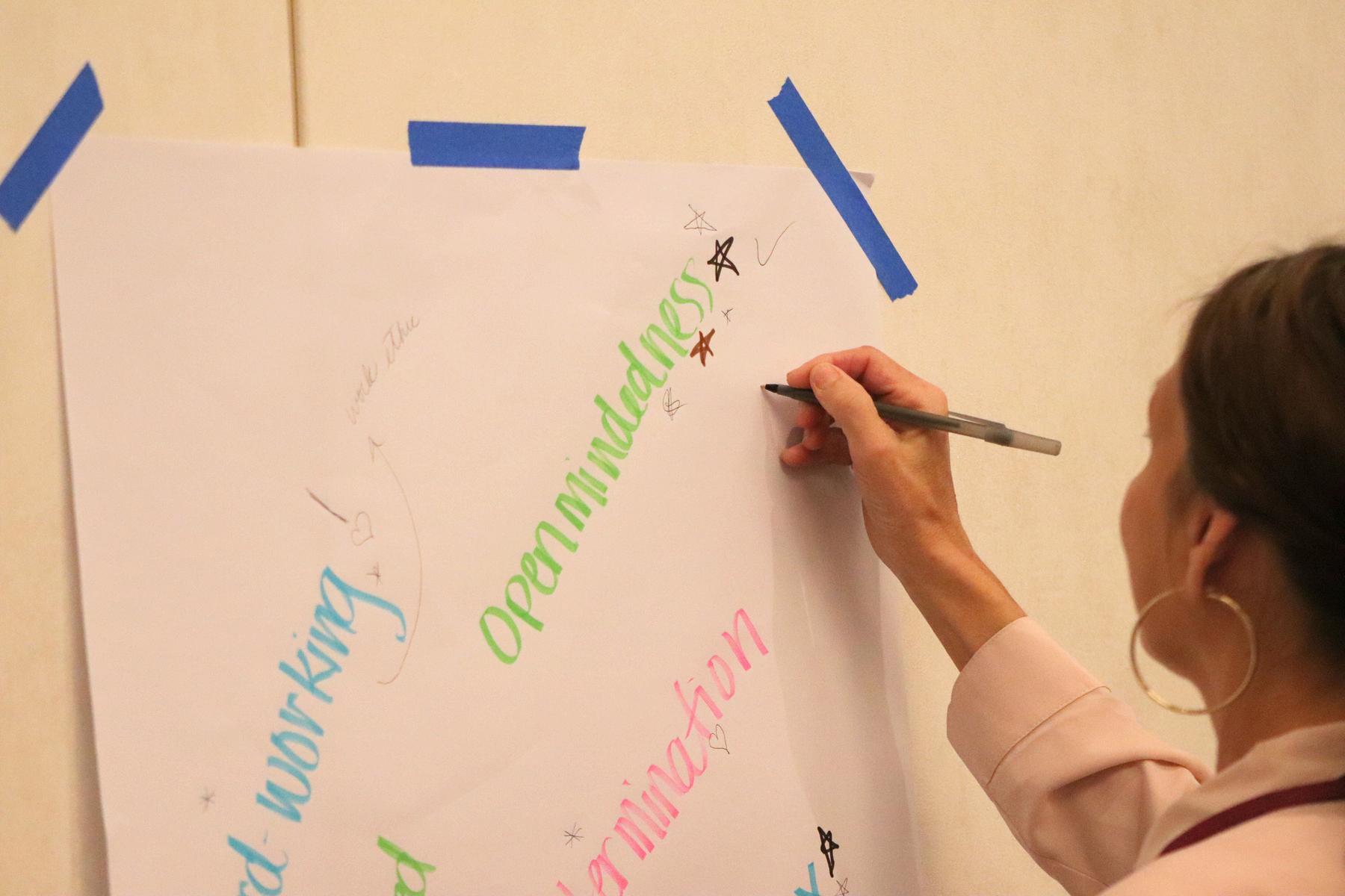 The workshop began with a two-part introduction: share your name and one way you express your creativity or practice art. This establishes an invitational space where “closet artists” and “creative spirits” are welcome. Since we usually don’t talk about hobbies and art in the same spaces as moral formation or character education, investing time in creating a collaborative and inclusive atmosphere prepared participants for the deeper work ahead. After the room buzzed with a bit of connection, I shared the customized prompt and asked people to silently reflect on and journal about their answer.