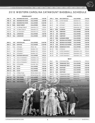2013 WESTERN CAROLINA CATAMOUNT BASEBALL SCHEDULE F E B R U A RY FEB. 15