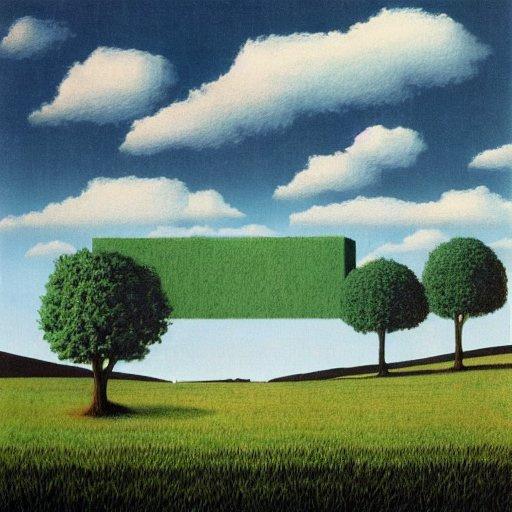 Imagen de paisaje basada en el estilo de Magritte a partir de AI