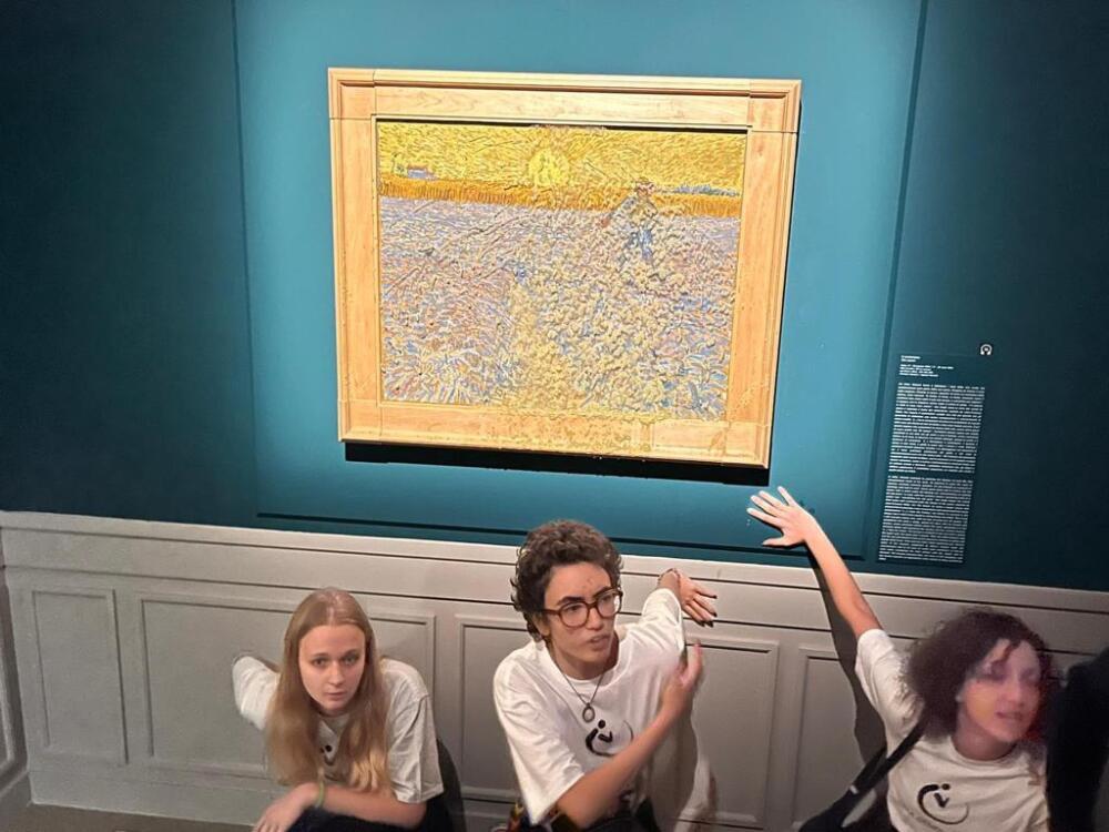 Dos activistas arrojaron sopa de tomate a la pintura y pegaron sus palmas a la pared del museo.