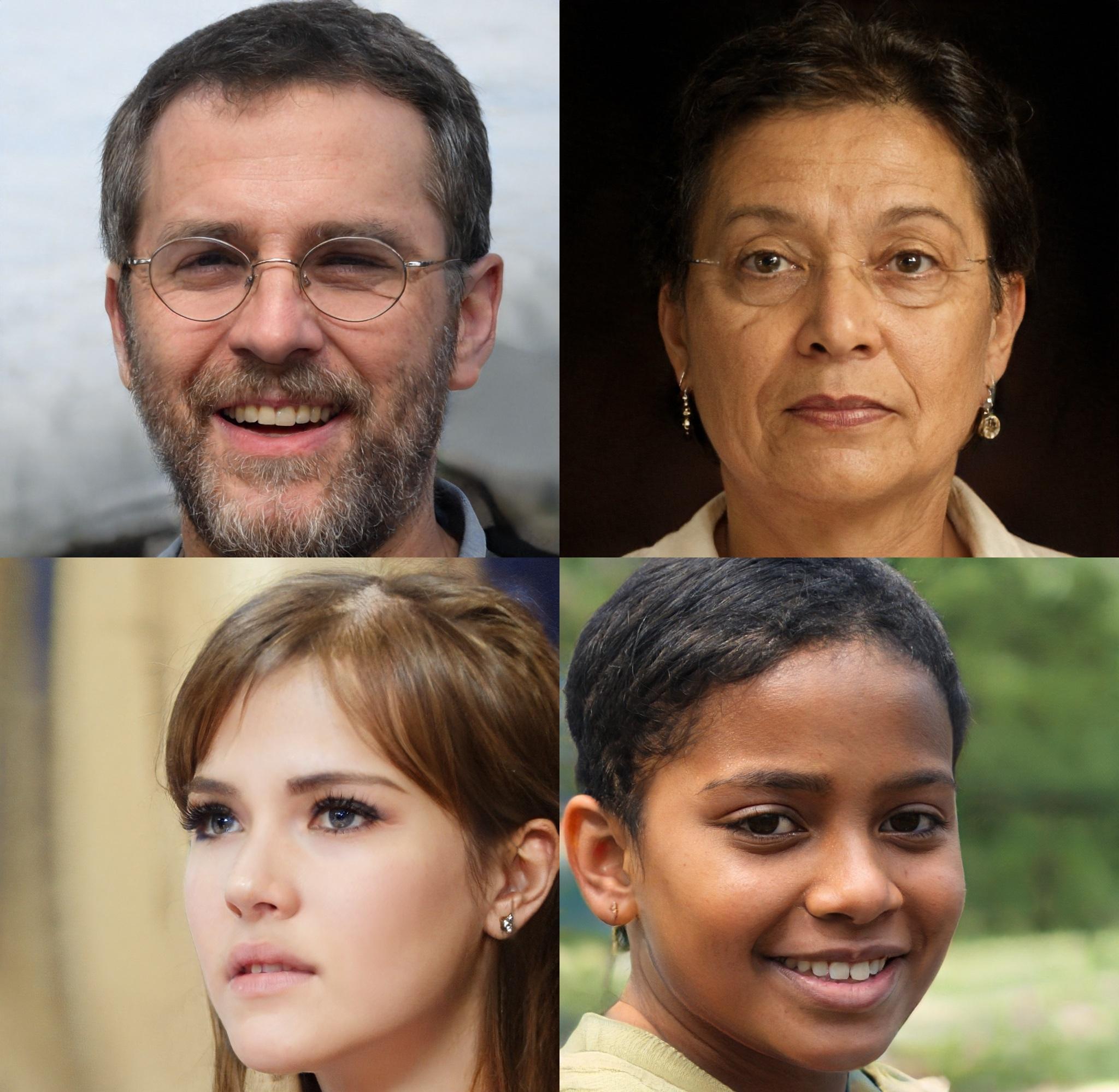 Tres rostros de personas que no existen, generados a partir de AI
