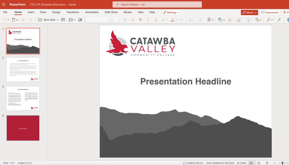 Mountain peaks are outlined underneath the Red Hawk to connect the refreshed logo with our local Catawba Valley landscape. Placing the “Valley” underneath our mascot and above our college name serves as a visual reminder of our legacy.