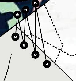 Uniones entre la capucha y la parte superior mediante sobrantes de tela de los laterales enganchados con ojalillos
