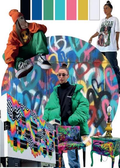 Siguiendo la consigna de promover la reutilización y el reciclaje de telas y prendas, junto con mi tema inspiración basado en el arte urbano, diseñé esta línea que representa la libertad y la expresión caracterizada por colores llamativos, formas irregulares, recortes y distintas uniones.
