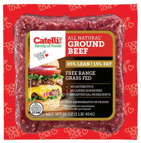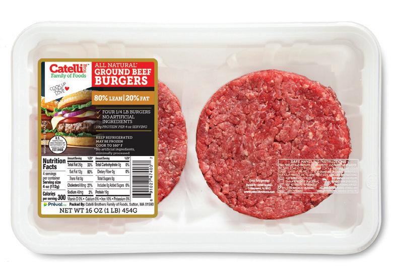 L INGREDIENTS SERVING FAT 80% Lean/20% Fat Ground Beef Packed By: Catelli Brothers Family of Foods 71 Blackstone Street, Sutton MA 01590 Do Not Microwave in Package. Cook to 160°F. USE OR FREEZE BY: POULTRY.SOM FOODPRODUCTS MA CONTAIN BACTERIATHAT COULD CAUSE ILLNESSI TH PRODUCT IS MISHANDLED OR COOKED IMPROPERLY. SAFE HANDLING INSTRUCTIONS KEEP RAW MEAT AND/OR POULTRY WASH WORKING SURFACES (INCLUDING CUTTING BOARDS) UTENSILS ANDHANDS AFTE TOUCHING MEA OR POULTRY. REFRIGERATOR OR MICROWAVE. COOK THOROUGHLY. REFRIGERATE LEFTOVERS IMMEDIATELY OR DISCARD. Great for Burgers Tacos, Chili, Nachos Meatballs, Sloppy Joes Meatloaf & Sauce. For recipes visit CatelliBrothers.com 700-1489 Ground Beef Label 80/20 % Daily Value* Total Fat 26g 33% Saturated Fat 12g 60% Trans Fat 0g Cholesterol 80mg 27% Sodium 40mg 2% Total Carbohydrate 0g 0% Dietary Fiber 0g 0% Total Sugars 0g Includes 0g Added Sugars 0% Protein 19g Vitamin D 0mcg 0% Calcium 11mg 0% Iron 2mg 10% Potassium 22mg 0% *The % Daily Value (DV) tells you how much nutrient in serving of food contributes to daily diet. 2,000 calories day is used for general nutrition advice. 4 servings per container Serving size 4 oz (112g) Amount per serving Calories 300 Nutrition Facts ALL NATURAL* GROUND BEEF Servin g S ugg estion ALL NATURAL* NO ARTIFICIAL INGREDIENTS 19g PROTEIN PER 4 oz SERVING KEEP REFRIGERATED, MAY BE FROZEN *No artificial ingredients, minimally processed 80% LEAN 20% FAT | 80% Lean/20% Fat Ground Beef Packed By: Catelli Brothers Family of Foods 71 Blackstone Street, Sutton MA 01590 Do Not Microwave in Package. Cook to 160°F. USE OR FREEZE BY: THIS PRODUC WA PREPARE FROM INSPECTE AND PASSED MEAT AND/OR POULTRY.SOME FOODPRODUCT MAY CONTAIN BACTERIATHAT COULD FOR YOUR PROTECTION FOLLOWTHES SAFE HANDLING INSTRUCTIONS. SAFE HANDLING INSTRUCTIONS D/OR POULTRY PRODUCT AWAYFROMOTHERFOODS. WASH WORKING SURFACE (INCLUDING BOARDS) AFTER TOUCHING MEAT OR POULTRY. KEE FROZEN THAW IN REFRIGERATOR OR MICROWAVE. COOK THOROUGHLY. KEEP HO FOODS HOT. REFRIGERATE LEFTOR DISCARD. Great for Burgers Tacos, Chili, Nachos Meatballs, Sloppy Joes Meatloaf & Sauce. For recipes visit CatelliBrothers.com 700-1489 Ground Beef Label 80/20 % Daily Value* Total Fat 26g 33% Saturated Fat 12g 60% Trans Fat 0g Cholesterol 80mg 27% Sodium 40mg 2% Total Carbohydrate 0g 0% Dietary Fiber 0g 0% Total Sugars 0g Includes 0g Added Sugars 0% Protein 19g Vitamin D 0mcg 0% Calcium 11mg 0% Iron 2mg 10% Potassium 22mg 0% *The % Daily Value (DV) tells you how much nutrient in a serving of food contributes to a daily diet. 2,000 calories a day is used for general nutrition advice. 4 servings per container Serving size 4 oz (112g) Amount per serving Calories 300 Nutrition Facts Great for Burgers Tacos Chili Nachos Meatballs, Sloppy Joes Meatloaf & Sauce. For recipes visit CatelliBrothers.com Packed By: Catell Brothers Family of Foods 71 Blackstone Street, Sutton MA 01590 Do Not Microwave in Package. Cook to 160°F. USE OR FREEZE BY: THIS PRODUC WA PREPARE FROM INSPECTED AND PASSED MEA AND/OR POULTRY.SOME FOODPRODUCT MAY CONTAIN BACTERIATHA COULD FOR YOUR PROTECTION FOLLOWTHES SAFE HANDLING INSTRUCTIONS. SAFE HANDLING INSTRUCTIONS D/OR POULTRY PRODUCT AWAYFROMOTHERFOODS. WASH WORKING SURFACES (INCLUDING BOARDS) AFTER TOUCHING MEA O POULTRY. KEE FROZEN THAW IN REFRIGERATOR OR MICROWAVE. COOK THOROUGHLY. KEEP HOT FOODS HOT. REFRIGERAT LEFTOR DISCARD. 700-1488 Ground Beef Label 85/25 % Daily Value* Total Fat 17g 22% Saturated Fat 6g 30% Trans Fat 1g Cholesterol 75mg 3% Sodium 75mg 3% Total Carbohydrate 0g 0% Dietary Fiber 0g 0% Total Sugars 0g Includes 0g Added Sugars 0% Protein 21g Vitamin D 0mcg 0% Calcium 17mg 2% Iron 2mg 10% Potassium 335mg 8% *The % Daily Value (DV) tells you how much a nutrient in a serving of food contributes to daily diet. 2,000 calories a day used for general nutrition advice. 4 servings per container Serving size 4 oz (112g) Amount per serving Calories 240 Nutrition Facts Grass Fed 85% Lean/15% Fat Ground Beef Great for Burgers Tacos, Chili, Nachos Meatballs, Sloppy Joes Meatloaf & Sauce. For recipes visit CatelliBrothers.com Packed By: Catell Brothers Family of Foods 71 Blackstone Street, Sutton MA 01590 Do Not Microwave in Package. Cook to 160°F. USE OR FREEZE BY: THIS PRODUCT W PREPARED FROM INSPECTED AND ASSED MEA AND/OR CAUS ILLNESSI TH PRODUCT IS MISHANDLED OR COOKED IMPROPERLY. FO YOUR PROTECTION FOLLOWTHESE SAF HANDLING INSTRUCTIONS. SAFE HANDLING INSTRUCTIONS KEEP RAW MEAT AND/OR POULTRY PRODUC AWAYFROMOTHERFOODS. (INCLU CUTTING BOARDS) UTENSILS ANDHANDS AFTE TOUCHING MEA OR POULTRY. KEEP FROZEN THAW IN REFRIGERATOR OR MICROWAVE. COO THOROUGH KEEP HO FOODS HOT. OVERS IMMEDIATELY OR DISCARD. 700-1488 Ground Beef Label 85/25 Servin g S ugg estion No artificial ingredients, minimally processed "**Never confined to a feedlot ALL NATURAL* GROUND BEEF NO ANTIBIOTICS NO ADDED HORMONES NO ARTIFICIAL INGREDIENTS FREE RANGE** 100% GRASS FED KEEP REFRIGERATED, MAY BE FROZEN 85% LEAN 15% FAT | % Daily Value* Total Fat 17g 22% Saturated Fat 6g 30% Trans Fat 1g Cholesterol 75mg 3% Sodium 75mg 3% Total Carbohydrate 0g 0% Dietary Fiber 0g 0% Total Sugars 0g Includes 0g Added Sugars 0% Protein 21g Vitamin D 0mcg 0% Calcium 17mg 2% Iron 2mg 10% Potassium 335mg 8% *The % Daily Value you how much a nutrient in a serving of food contributes to a daily diet. 2,000 calories a day used for general nutrition advice. 4 servings per container Serving size 4 oz (112g) Amount per serving Calories 240 Nutrition Facts Grass Fed 85% Lean/15% Fat Ground Beef