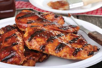 4” x 2” USE OR FREEZE BY: Ingredients: Skinless Boneless Chicken Breast, Kansas City Barbecue Solution (Filtered Water, Tomato Paste, Vinegar, Cane Sugar, Molasses, Brown Sugar, Salt, Corn Starch, Dehydrated Onion, Chili Powder, Worcestershire Sauce Distilled White Vinegar, Molasses, Sugar, Water, Salt, Onions, Anchovies, Garlic, Cloves, Tamarind Extract, Natural Flavors, Chili Pepper Extract), Soy Sauce (Water, Soybeans, Wheat, Salt), Dehydrated Garlic, Paprika, Spices, Cultured Dextrose, Phosphoric Acid, Mustard, Natural Smoke Flavor. Contains Fish (Anchovies), Soy, Wheat. REMOVE CHICKEN FROM PACKAGE Kansas City Barbecue % Daily Value* Total Fat 2.5g 3% Saturated Fat 0.5g 3% Cholesterol 70mg 23% Sodium 180mg 8% Total Carbohydrate 6g 2% Varied servings per container Serving size 4 oz (112g) Amount per serving Calories 140