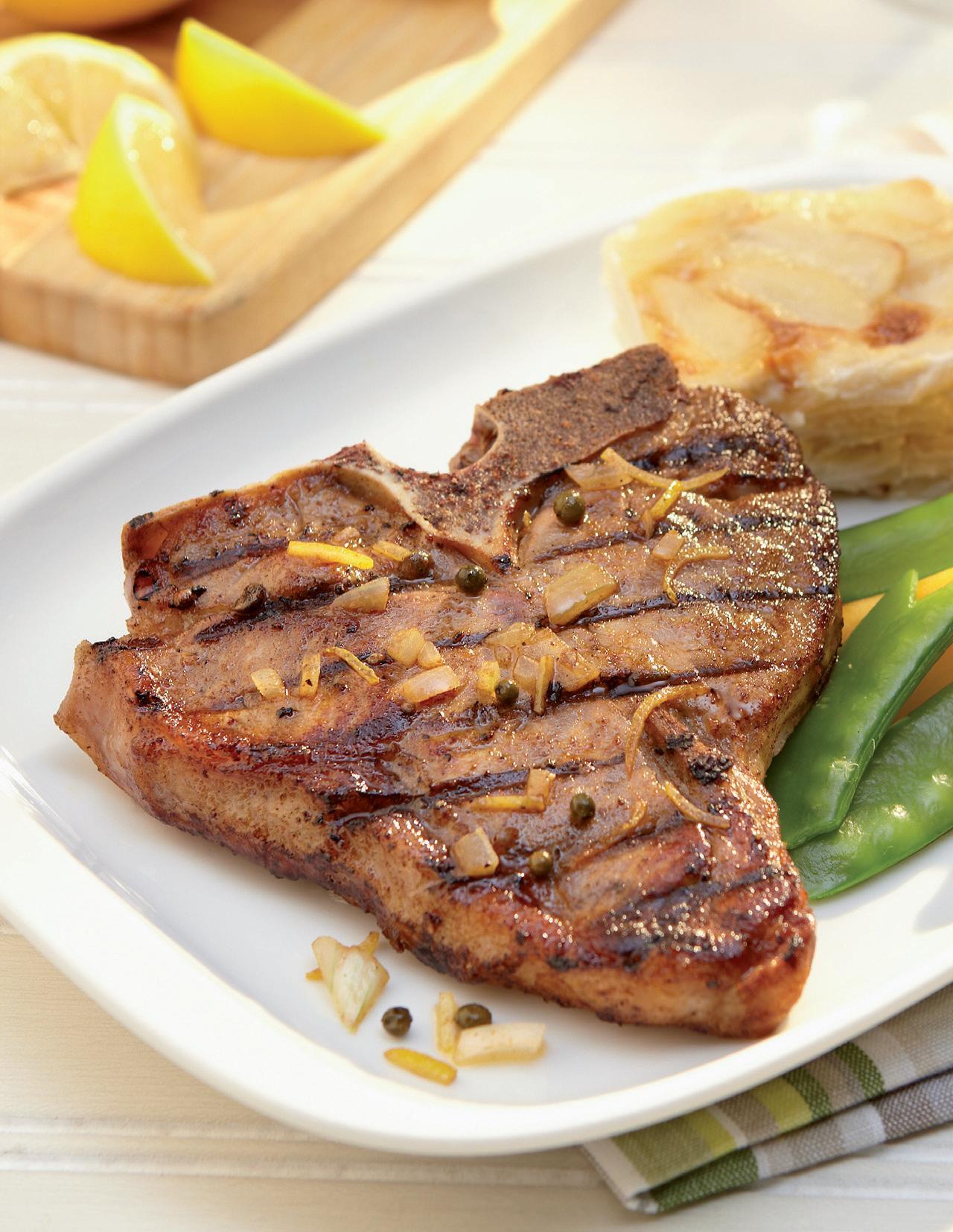 Selected veal loin with tenderloin removed, creating a more economical strip chop. Chops cut 3⁄4”- 1” thick. Packed 2 chops per tray.