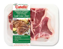 Selected USDA Choice lamb loins with tail removed and cut into chops, 3⁄4”- 1” thick. Packed 4 chops per tray.