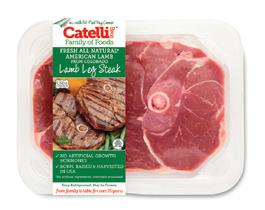 Selected USDA Choice lamb leg sliced to maximize appearance of center cut leg steak, 3/4” thick. Packed 1 steak per tray.