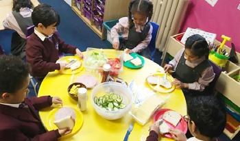 The finale of their castle topic was to have a Medieval Feast. The children baked bread, made musical instruments and some even made their own headdresses and costumes. The children laughed at the jester’s jokes, were impressed with the musicians and were thankful that the taste tester survived.