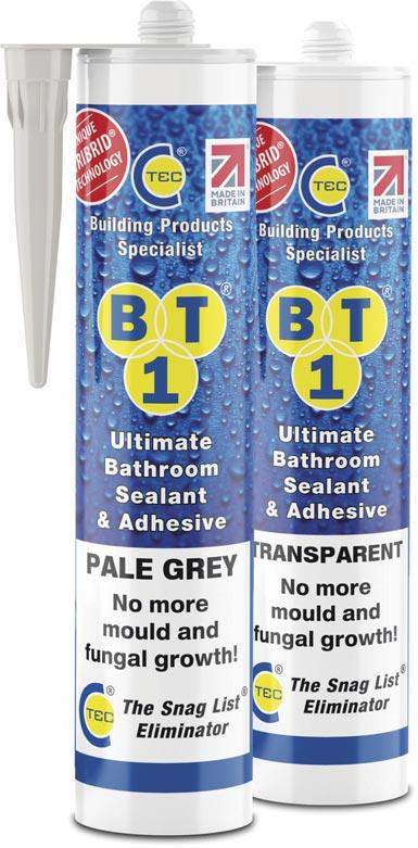 BT1 is similar to CT1 but is also anti-bacterial and mouldresistant, making it ideal for sealing around baths, sinks, showers, and kitchen worktops. BT1’s formulation prevents black mould growth, which is a common issue in painted and decorated spaces. Unlike traditional sealant and silicones, BT1 is paintable when it has cured, meaning decorators can achieve a seamless finish without worrying about paint adhesion issues. Provides a clean, professional look without the need for additional priming.