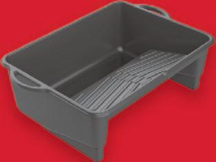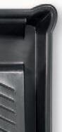 KwickKan stores flat and has a total of six cut-out handles, one at each end and two on each side. Made of 0.06in gauge black ABS from new and recycled plastics, ensures durability and flexibility.