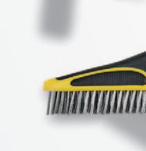 The yellow hand brush has a black ribbed soft grip area on the top of the handle, plus the handle neatly nests into the dustpan handle, making it easy to store and carry. It has stiff and soft PVC flagged degrees of debris. It’s as tough as old boots and a good all-rounder, made by Charles Bentley, a company that has been around since 1860!