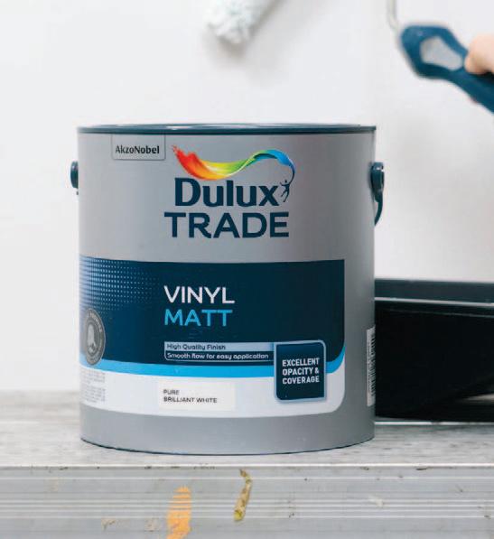 While achieving a flawless finish at the end of the job is essential, clients are just as concerned about how that surface will look in a few months, or even years, down the line. Scuff marks from children, pets, furniture, and more can all impact the final finish of your hard work, and hightraffic areas like hallways, kitchens, and living rooms are particularly at risk of this damage. That’s where durable, scrubbable matt paints that are specially formulated to resist stains can help. Whilst some paints do include stain resistance, marks can still appear which is why durable wall coatings that allow surfaces to be scrubbed without compromising on the finish are ideal. For you, that means fewer call-backs and better chances of referrals, and for clients it ensures they have a wall that stays looking fresher for longer.
