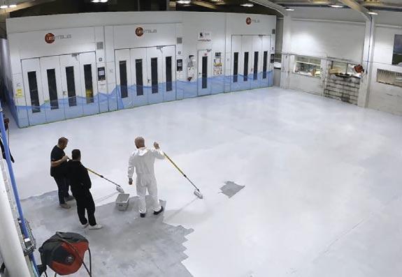 The job was undertaken by a team made up of The Bodycentre’s own staff, including technicians, the general manager and one of the directors. “The application was very straightforward,” says Jake, adding, “recoat time was exceptional. It took us about a day to prep the floor ready for the product to be applied, but once this was done and all necessary objects were masked up, it took us just under ten hours to apply three coats.”