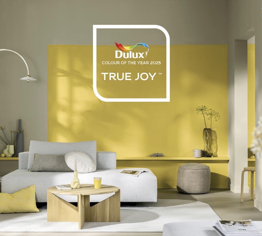 We explore the key colours and design trends for 2025. Dulux invites decorators to incorporate yellow into projects with the optimism of True Joy™ selected as its Colour of the Year for 2025. Look out as customers may ask for ombre walls or double drenching to get the on-trend looks!
