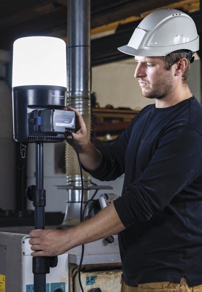 AREA 6 CONNECT provides 360° illumination with a diffused and uniform light up to 6000 lumen, which is ideal for the painter who requires efficient illumination of the entire work area. This makes it possible for more people to work in the same room without the need for more than one lamp. Due to the compact and lightweight design, AREA 6 CONNECT is portable and easy to carry around. It is also supplied with a hook for flexible positioning and can be mounted directly on the SCANGRIP TRIPOD.