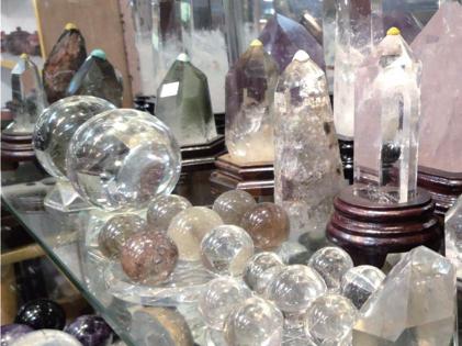 另外,有些老闆不喜歡顧客 擅自觸碰水晶,或是拍攝未 出售商品的照片。所以在挑 選水晶前,顧客應主動詢問 老闆,經同意後,再行挑選 動作∼