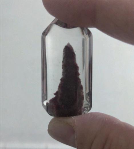 如果是有破損的水晶,可以 靠觀察斷面來分辨。水晶如 果經過碰撞不幸破碎的話, 斷面通常是呈現貝殼狀的紋 理,不會是平整會是平面的