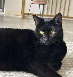 Hello I'm Tyrael, and I year old shy and hand short haired black cat. To build trust my foste gave me creamy treat love. Now I'm more confident, relaxed and playful I especially have fun watching and chatting with the birds outside and can often be found sitting at the window.