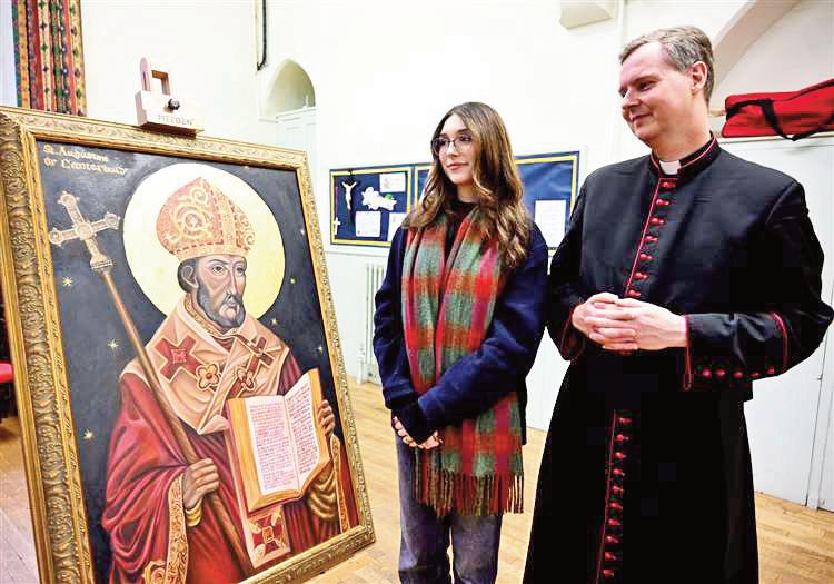A striking oil painting of St Augustine of Canterbury, created by local young artist Seraphina Kopliku, has been unveiled at St Mary's and St Augustine's Church in Stamford.