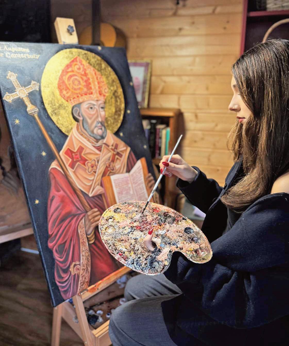 "Canon Peter approached me to paint St Augustine for the church," explains Seraphina. "He requested it be produced in an Eastern Orthodox iconography style, something I was very unfamiliar with, and a style not commonly done at all with oil paint."