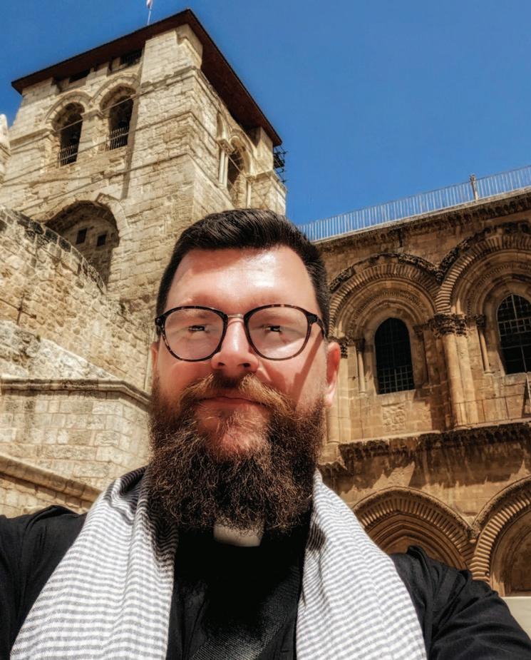 Fr Peter Wygnanski outside the Church of the Holy Sepulchre, Jerusalem.