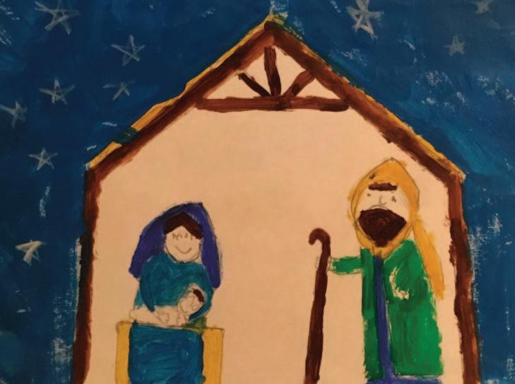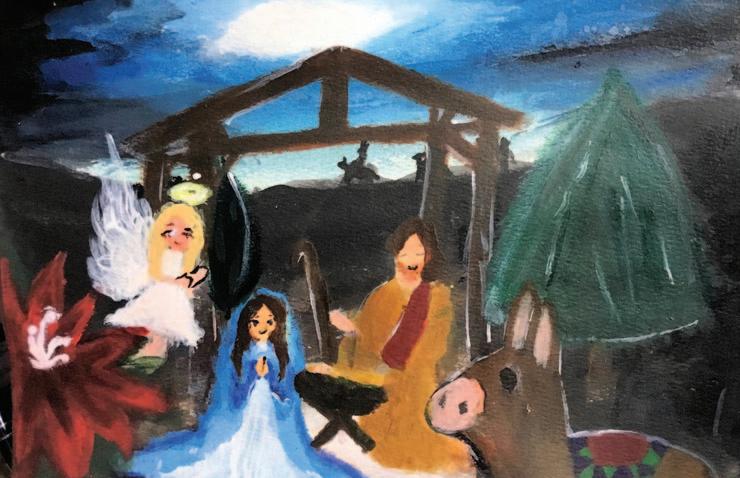 Pictured above left is the crib scene by Paolo Anderson, aged 13, below left, the crib paintings by Emmanuel Subash aged 6 and, below, by Juniper Timberlake age 10.