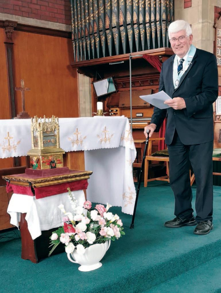 n Nick Walmsley has celebrated his 50 years as organist and Musical Director of St Helen’s Church, Hoveton. At a special celebration Mass on August 19, Nick was presented with a figurine depicting J S Bach at the organ. A large congregation gathered after Mass to enjoy refreshments with Nick. Pictured above is Nick with Parish Priest Fr Peter Raj.