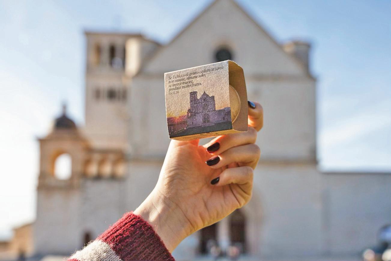 Pilgrims receive a gift of grains of wheat Image: Basilica of Saint Francis, Assisi