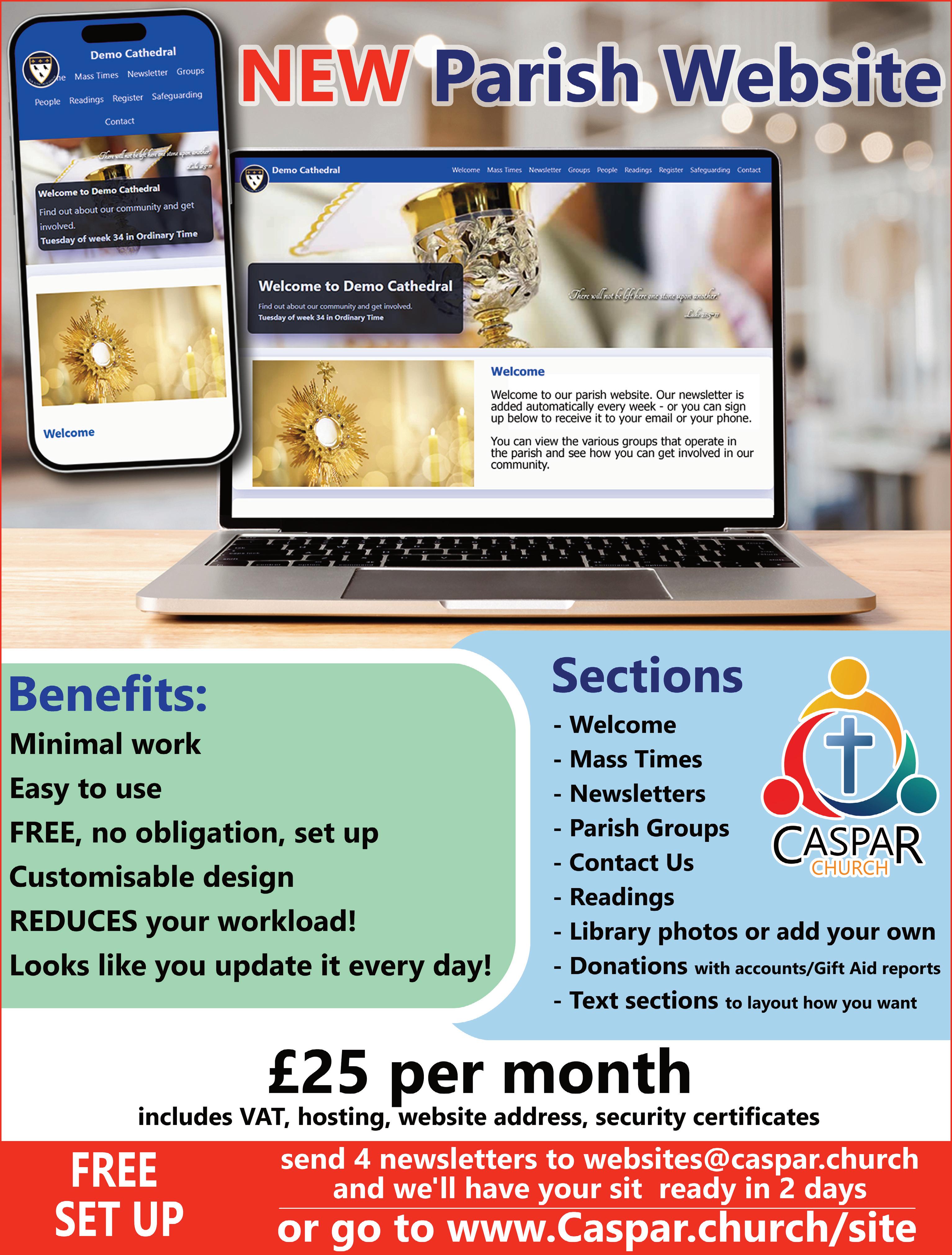 Readers: If you can encourage other readers in your parish please do so Advertising: We rely on advertising - if you know of anyone that would benefit from promoting their business, event or anything else to parishioners throughout the South West, do let us know.