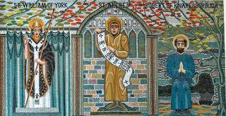 The new monument was designed by the Cathedral Architect, Richard Williams, and created in the workshops of Houghtons of York. It re-uses the late Victorian mosaic and some of the alabaster panels which together formed the structure of the original, within a new cabinet crafted from English oak.