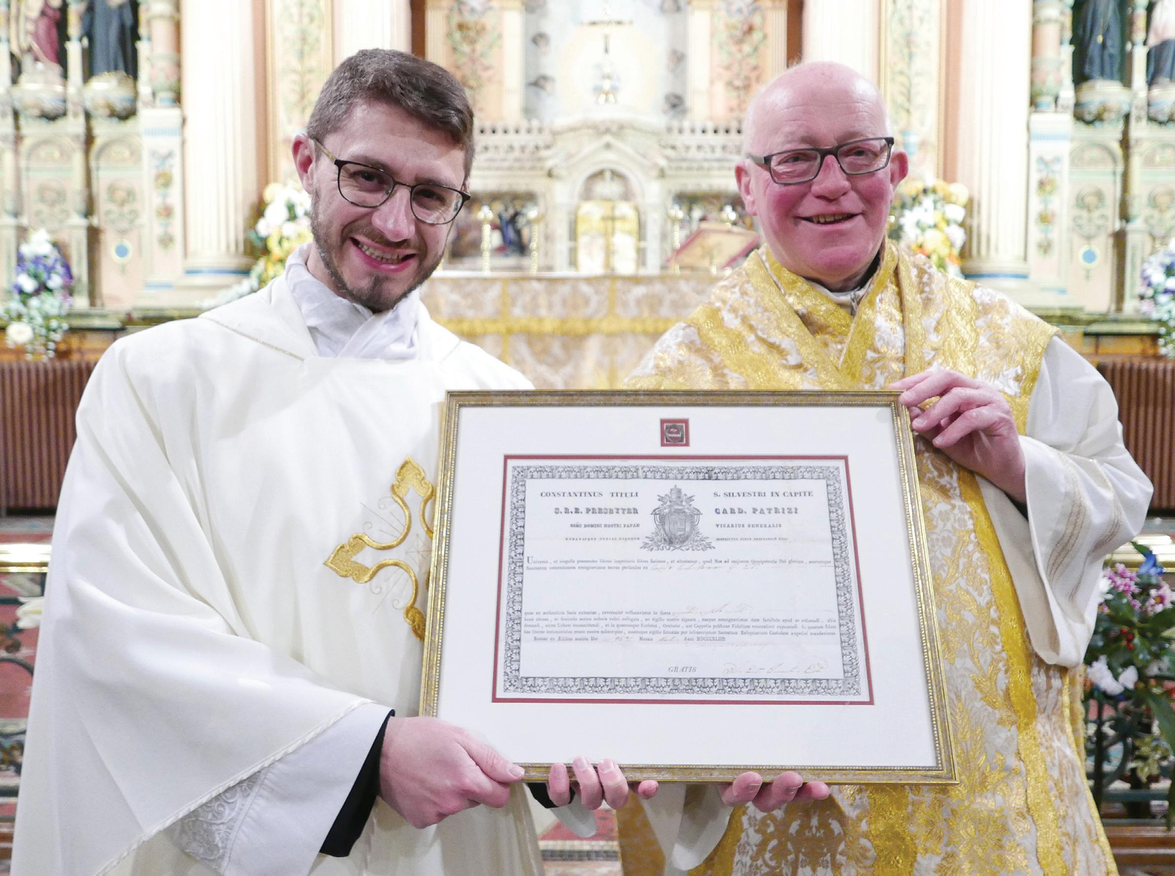 It also reflects the depth of continuity that exists between the universal Church and local communities – a document issued in Rome in 1853, entrusted to clergy over generations, has now found a lasting home in the parish