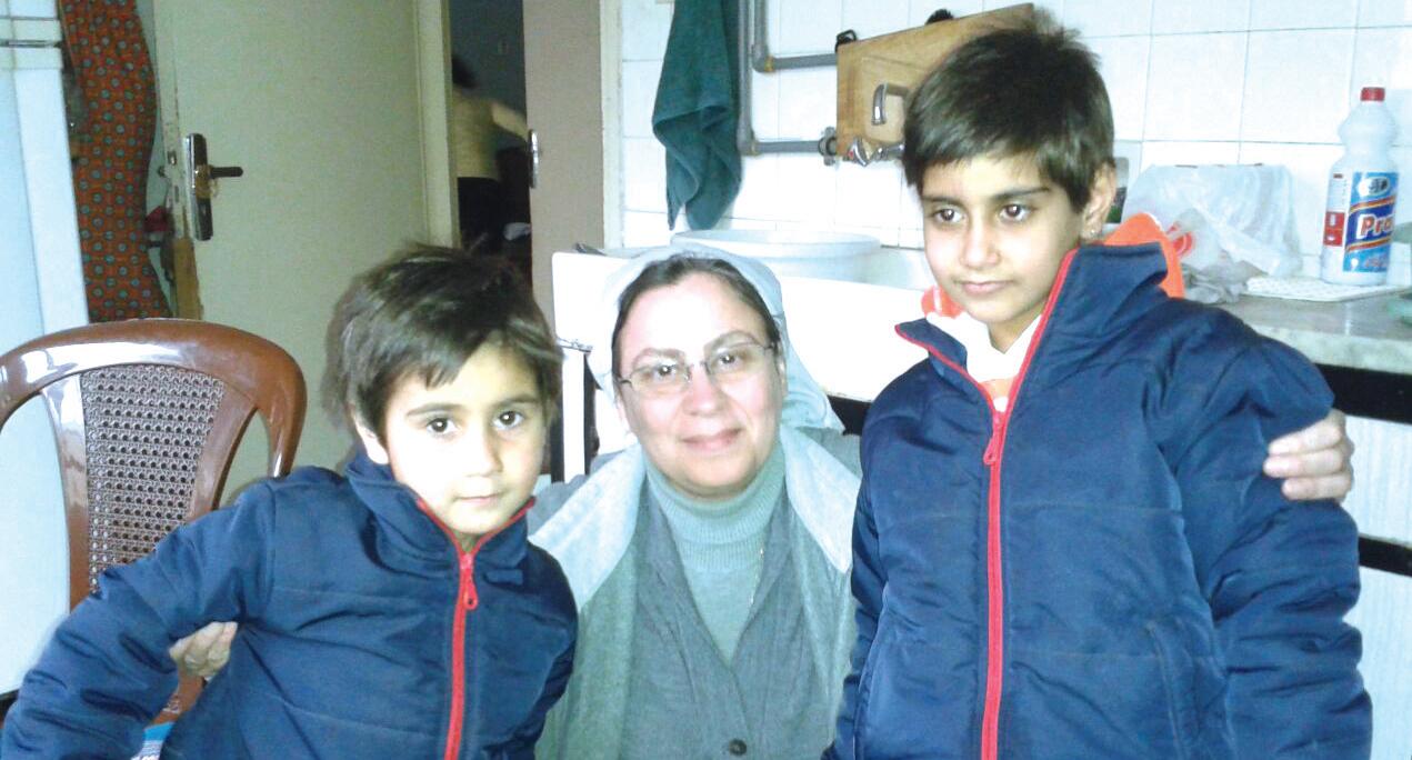 Syria-based Sister Annie Demerjian with displaced girls in Aleppo