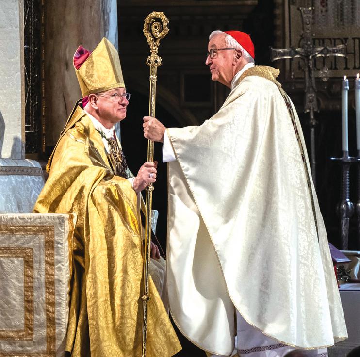 After the Installation, Archbishop-Emeritus Cardinal Vincent Nichols presented Archbishop Moth with the Westminster crozier, symbol of his office as bishop.