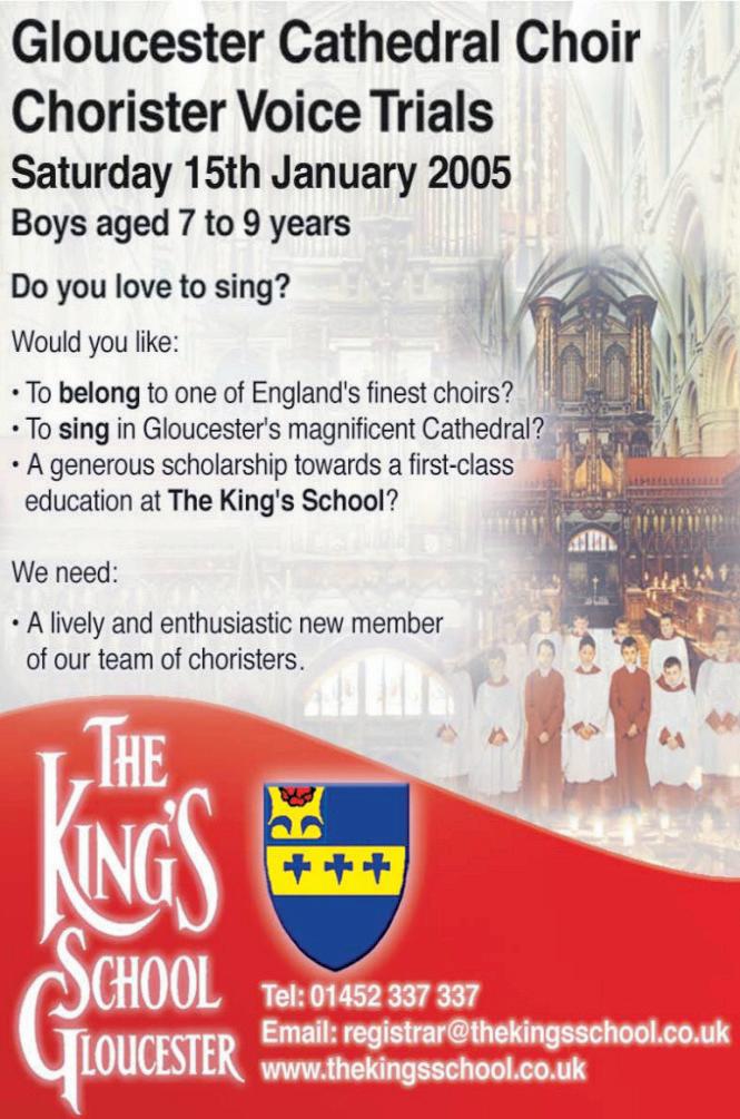 Open Auditions will be held for Choristerships (worth up to 50% of the school fees, plus one award of 100%)