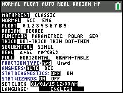 The first choice on the Mode menu will have a big impact on the way your calculator displays expressions and answers. Use Classic mode at your own peril; everything is better with MathPrint. Full disclosure: The only reason to use Classic mode is if you have a really long expression and want to see the whole expression without scrolling. MathPrint is the default mode, and I strongly endorse using MathPrint at all times.