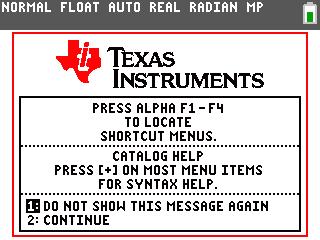 The first time you turn on your calculator, you’re greeted by an information screen, as shown in Figure 1-4. A few helpful reminders are displayed on the information screen. If you want to see this screen the next time you turn on your calculator, press Á. Otherwise, press À or Í.
