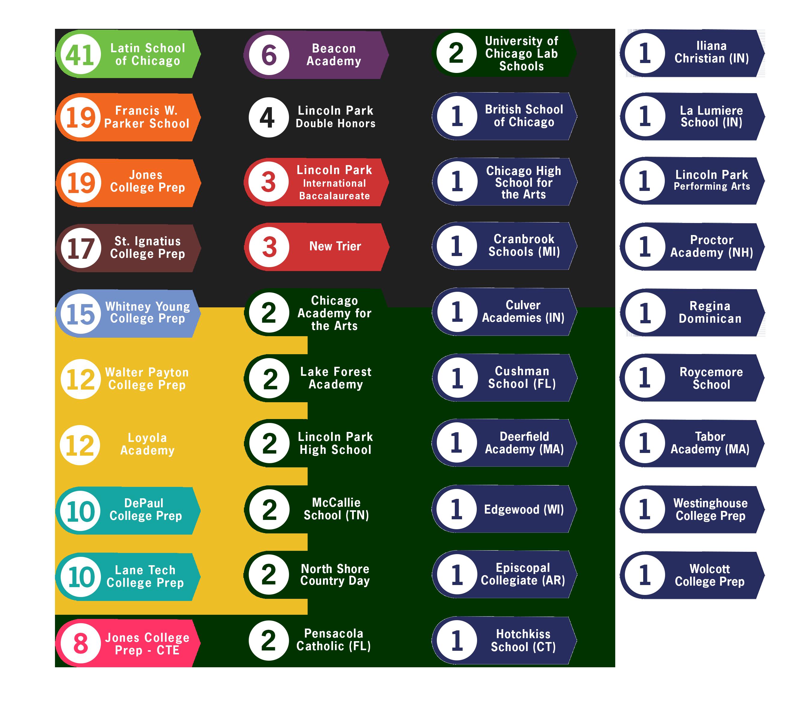 Prepared to take on a changing world, Catherine Cook graduates feel confident in their abilities as they continue their education at the top high schools in Chicago and across the country. From selective enrollment public high schools to independent boarding schools, our High School Placement Director works closely with students and families to find a school that is the best fit for their strengths, challenges, and goals. Over the last five years, our graduates have enrolled in these outstanding high schools: