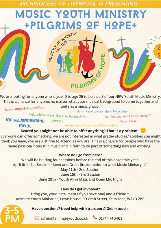 • We hope that this group will allow young people in our archdiocese to have an input with liturgies and events throughout the year; to practise music together and build confidence and, in time, to lead worship.