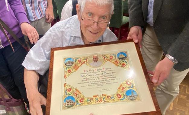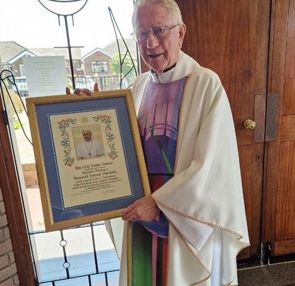 At the end of the Mass Fr Vincent was presented with a blessing from Pope Francis, in thanks and appreciation for his years of faithful service. He was very appreciative of the kindness shown to him by the parish of St Austin’s St Helens, in helping him to mark his special anniversary.