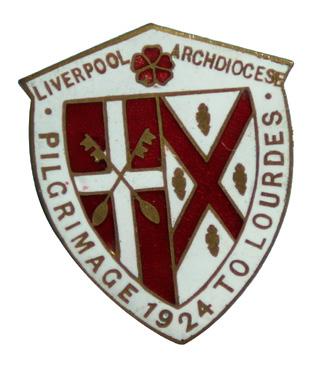 Father Lane’s report on the first pilgrimage survives among the Archdiocesan Archives. There’s even a list of the pilgrims and the hotels they were assigned to stay in. Father Lane gives a great amount of detail on the services, the torchlight processions, the bathing of the sick. He notes the popularity of Archbishop Keating, who led the pilgrimage and was staying at the Hotel Moderne with his brother Monsignor Vincent Keating of Birmingham Archdiocese. After one procession the Archbishop was escorted back to his hotel by the Liverpool pilgrims. “Outside”, says Father Lane, “they sang their English hymns, and then the Archbishop, standing on the pavement, thanked them all. He thanked the organisers, and officials by name; he thanked the clergy, doctors, nurses, and stretcher-bearers for their grand work; and lastly he thanked the people for their fine spirit and for the splendid way in which they had upheld Lancashire’s Catholic Faith”.