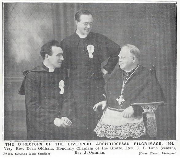 Two events in 1924 cemented the relationship of the archdiocese to Lourdes: a death and an honour. The death of Miss Evelyn McIvor of Barrow in Furness was not unexpected: she was so unwell she had in fact been advised not to travel. “Go on praying” were her final words. She was buried in Lourdes cemetery, in a part that was subsequently bought for potential further use by the Liverpool pilgrimage. The principal organiser of the pilgrimage was Dean John Oldham, Parish Priest of St Alban’s in Liverpool. He had been organising smaller pilgrimages since 1899, and as a mark of respect and appreciation Bishop Schoepfer appointed him an Honorary Chaplain of Our Lady of Lourdes, the first English priest to be so honoured.
